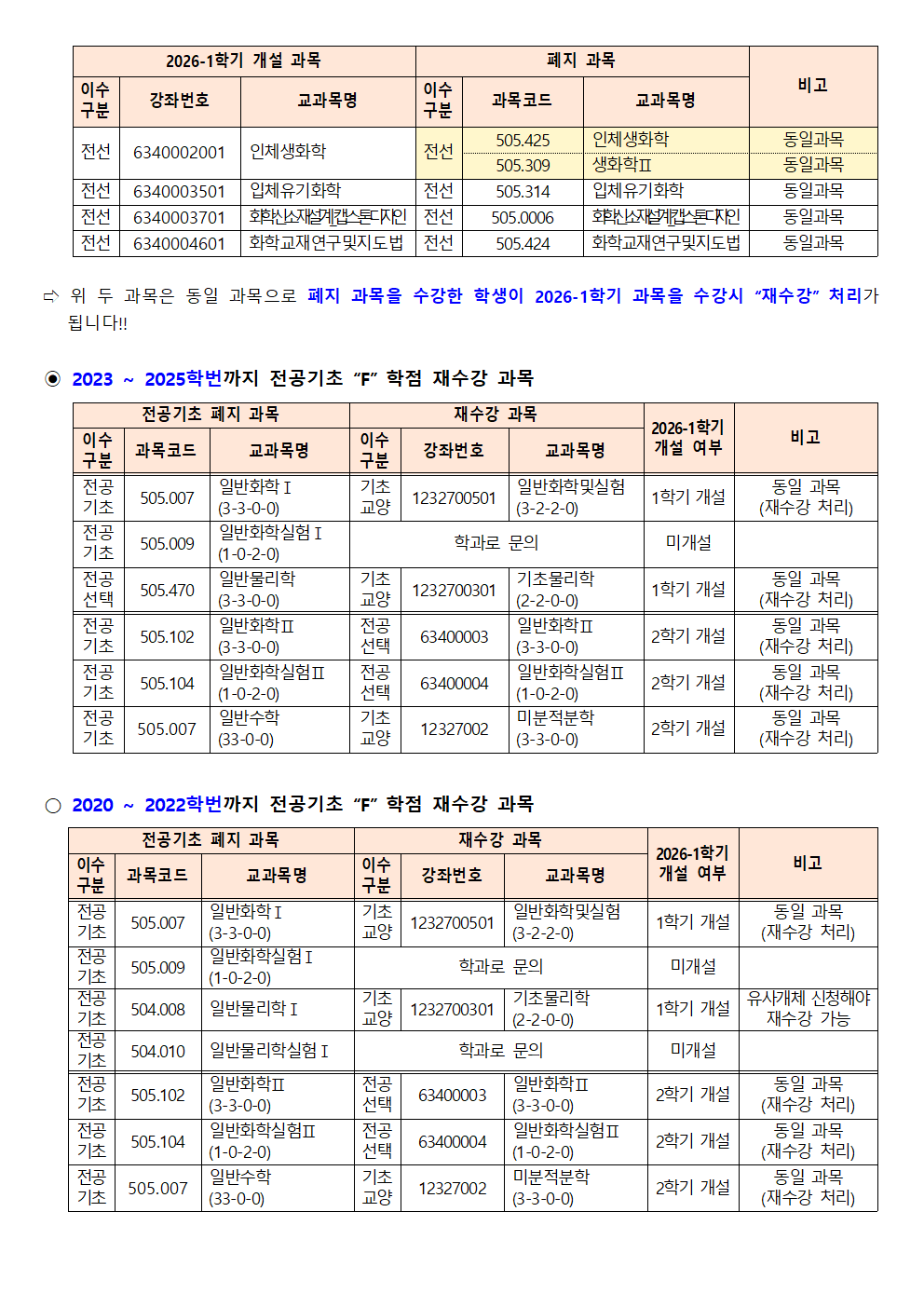[학부] 2026학년도 1학기 학년별 수강학신청 안내