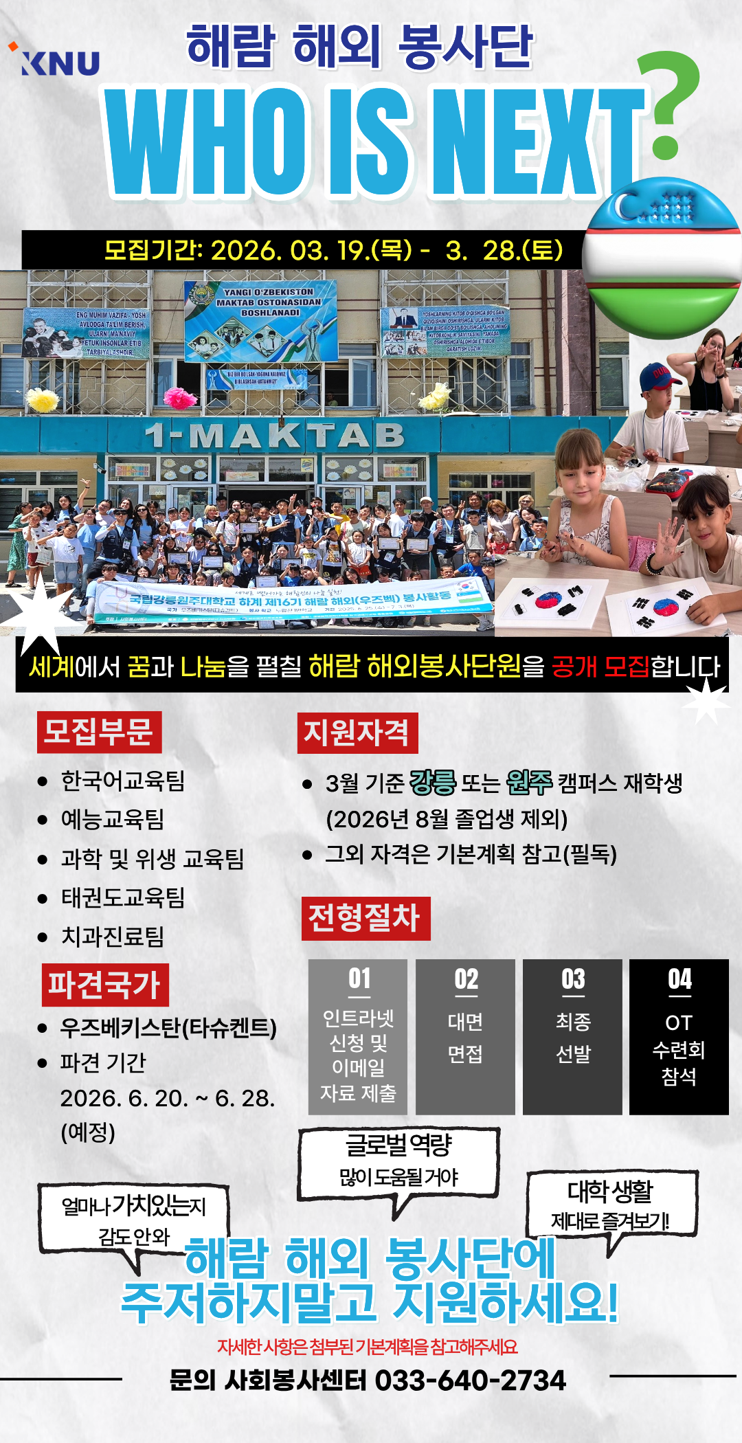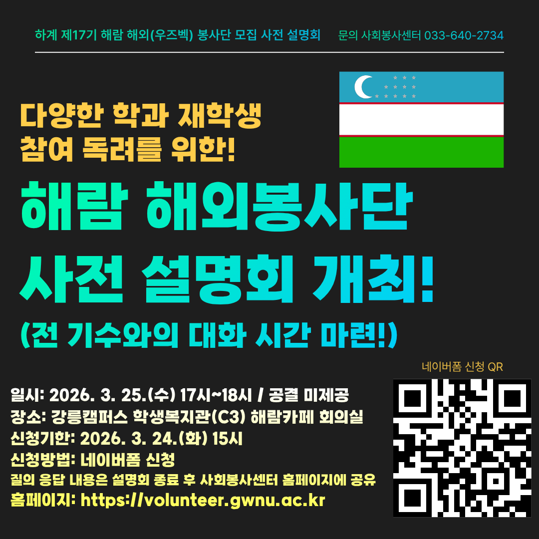 2026학년도 강릉·원주 하계 제17기 해람 해외(우즈베키스탄) 봉사단 모집