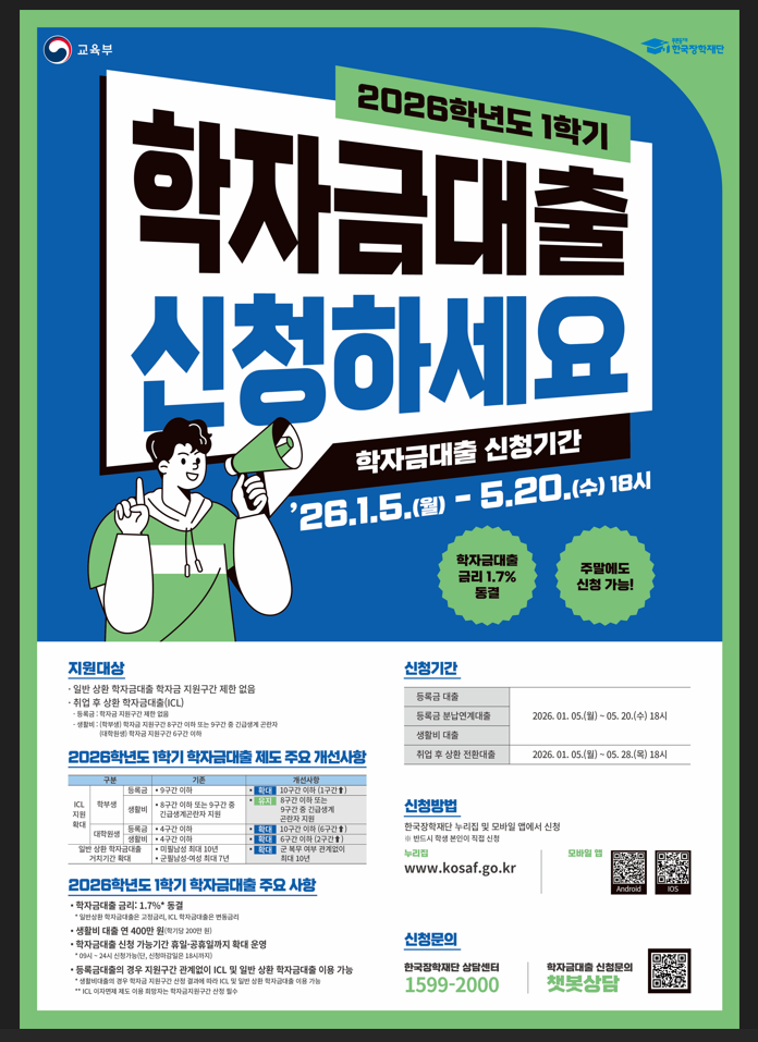 대출 관련 문의: 한국장학재단 상담센터 1599-2000